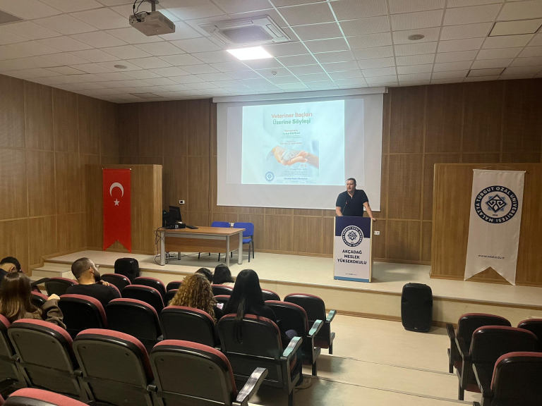 Akçadağ Meslek Yüksekokulu Laborant ve Veteriner Sağlık Programı öğrencileri, Öğr. Gör. Dr. Selda Sezer moderatörlüğünde, Ankara Doğuş Ecza Deposu Kurucu Ortağı ve Satış Müdürü Sayın Aykut Bayrak ile gerçekleştirilen söyleşide bir araya geldi. “Veteriner İlaçları Üzerine” başlığıyla düzenlenen etkinlikte Bayrak, mesleki kariyer sürecini, sektörde edindiği deneyimleri ve başarıya giden yolda izlenmesi gereken adımları öğrencilerle paylaştı.
