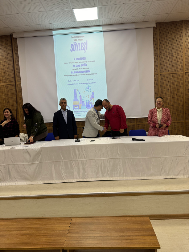 Akçadağ MYO Laborant ve Veteriner Sağlık Programı Bölüm Başkanı Doç. Dr. Abdurrahman KÖSEMAN, bölüm öğretim üyesi ve bölüm öğretim elamanları tarafından okulumuz konferans salonunda bölüm öğrencileri için Laborant ve Veteriner Sağlık Programı Kariyer Fırsatları etkinliği düzenlendi.